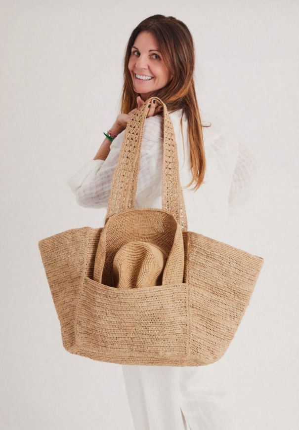Materiales: rafia 100% natural. Las asas son de rafia tejida.