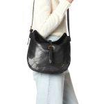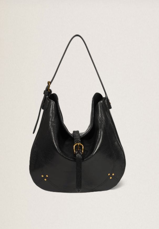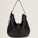 Bolso de hombro, para llevar al hombro, cruzado o en la mano. Asa de piel acolchada y correa de hombro ajustable y extraíble. Cierre mediante solapa magnética de piel, decorada con juncos cosidos.