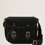 El modelo presenta un acabado impecable con herrajes de latón y una correa de hombro ajustable de cincha de algodón.