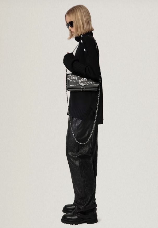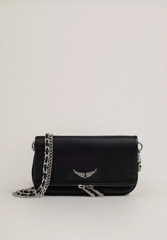 - Emblemático bolso de mano Rock Nano de piel con efecto granulado negro para mujer- Solapa con cierre de cremallera y magnético