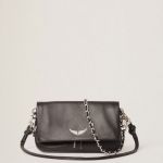 - Emblemático bolso de mano Rock Nano de piel con efecto granulado negro para mujer- Solapa con cierre de cremallera y magnético