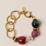 Pulsera con cadena de eslabones y perlas de resinas de colores en diferentes tamaños.