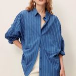 Camisa amplia en popelín de SESSÚN compacto con motivo de finas rayas bicolor texturizadas y bolsillos de parche, tejida en Italia.