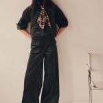 Pantalón amplio en chambray de color con hilos de lino moteados y torcidos teñidos.