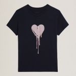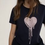 - Camiseta en 100% algodón- Estampado "Flowing heart" con strass
