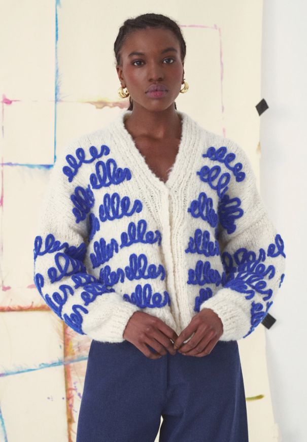 Un suéter atemporal que puedes usar todo el año y para combinar con una prenda llamativa. El bordado, realizado íntegramente a mano en nuestro taller en India, retoma la temática del surrealismo con el motivo emblemático de la temporada otoño-invierno 2025: el cadáver exquisito.