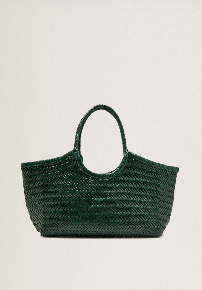 Elaborado con un tejido B tradicional y rematado con un borde superior impecable, presenta un estilo sencillo y atemporal inspirado en las formas clásicas de las cestas. Su tamaño lo hace fácil de llevar e ideal para el día a día, especialmente durante los meses más cálidos.
