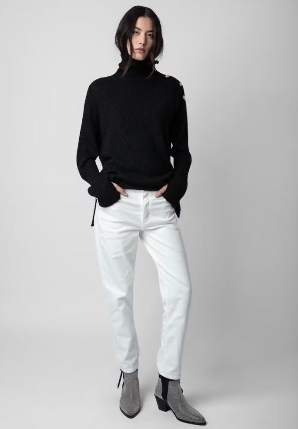 - Etiqueta de piel "Zadig Denim" en la parte trasera, correa metálica en el lateral y bordado "Mamma" en la parte interior de la cintura