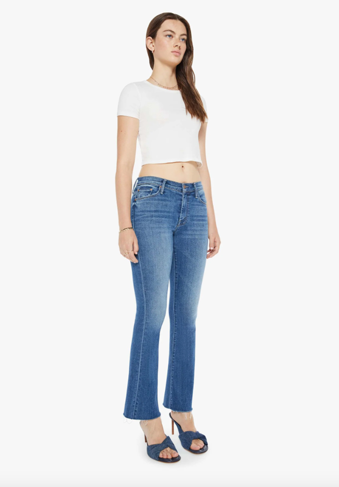 La rodilla está más arriba, y la entrepierna y el tiro son más cortos, por lo que el estilo queda perfecto.
