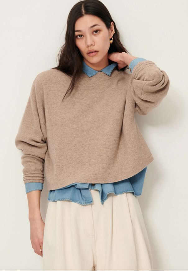 Jersey amplio de SESSÚN en punto milano con detalle de acanalado otomano en los puños.