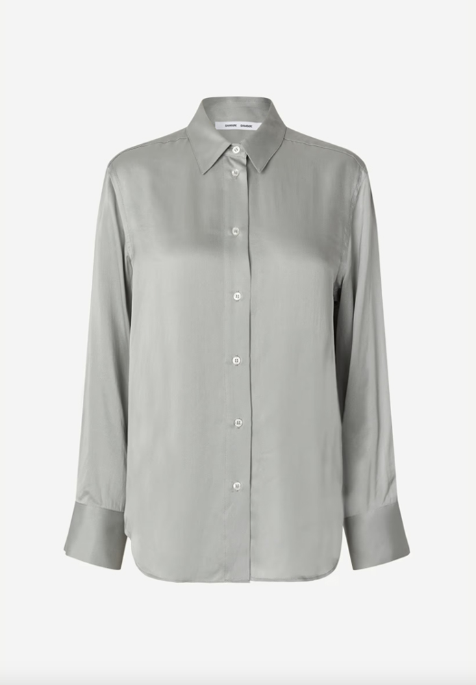 Cuello en punta, cierre de botones en la parte delantera y en los puños.