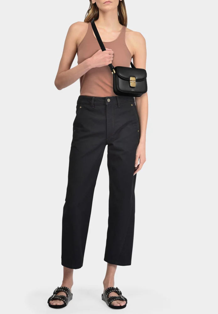 Con el estilo típico de A.P.C., este modelo está confeccionado en piel de líneas depuradas y mínimamente acentuado con detalles metálicos dorados.