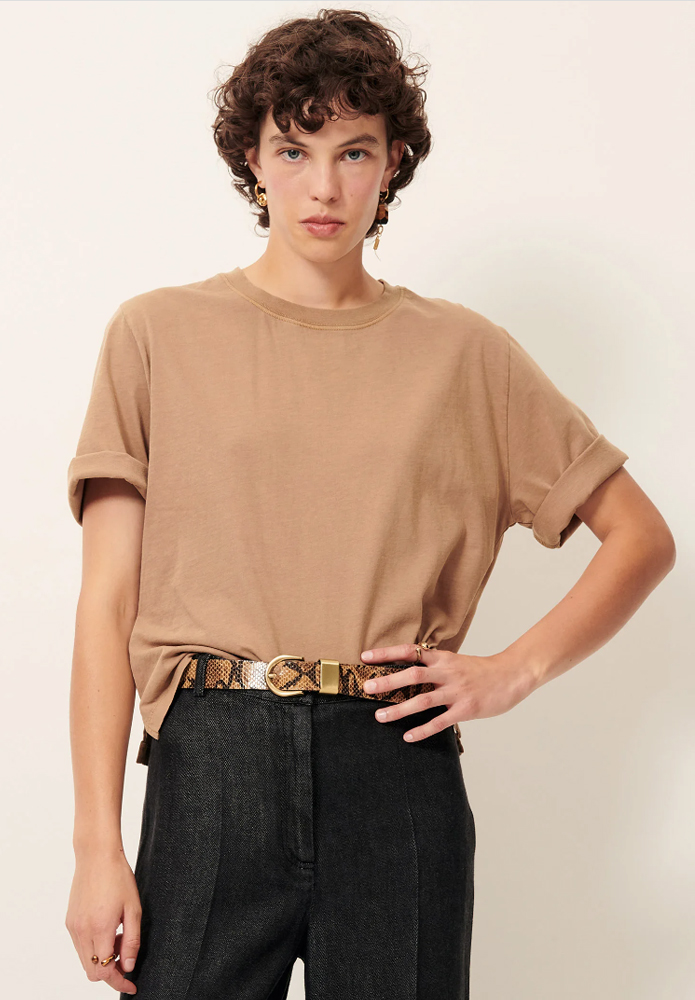 TOP SERGIO ALPAGA Camiseta amplia de SESSÚN en punto teñido con pigmentos, confeccionada y teñida artesanalmente en Portugal, en color ALPAGA.