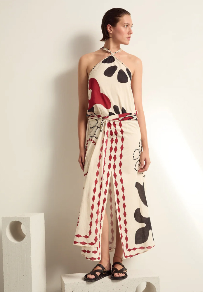 El vestido Ivina sin espalda es uno de los diseños icónicos de Mare di Latte. Sus líneas depuradas y su escote ajustable lo convierten en un vestido elegante y femenino. También disponible en seda o estampado.