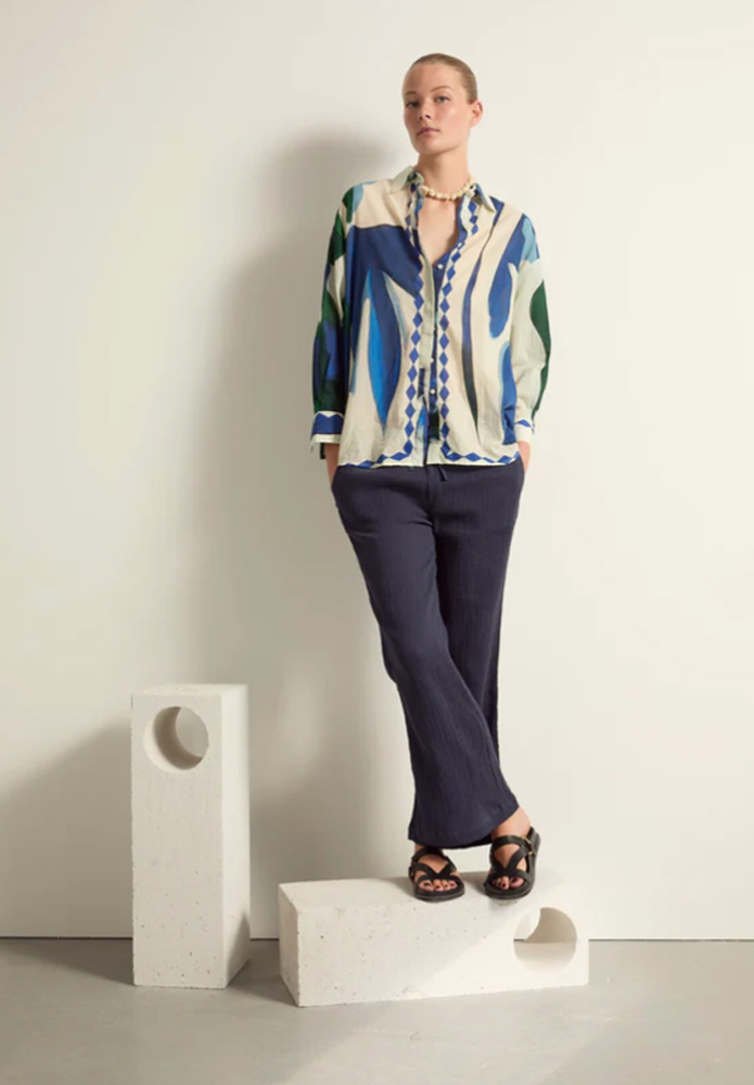 CAMISA JOLINE CAROUSEL Camisa Jolin de algodón en color Ink Blue de Mare di Latte.