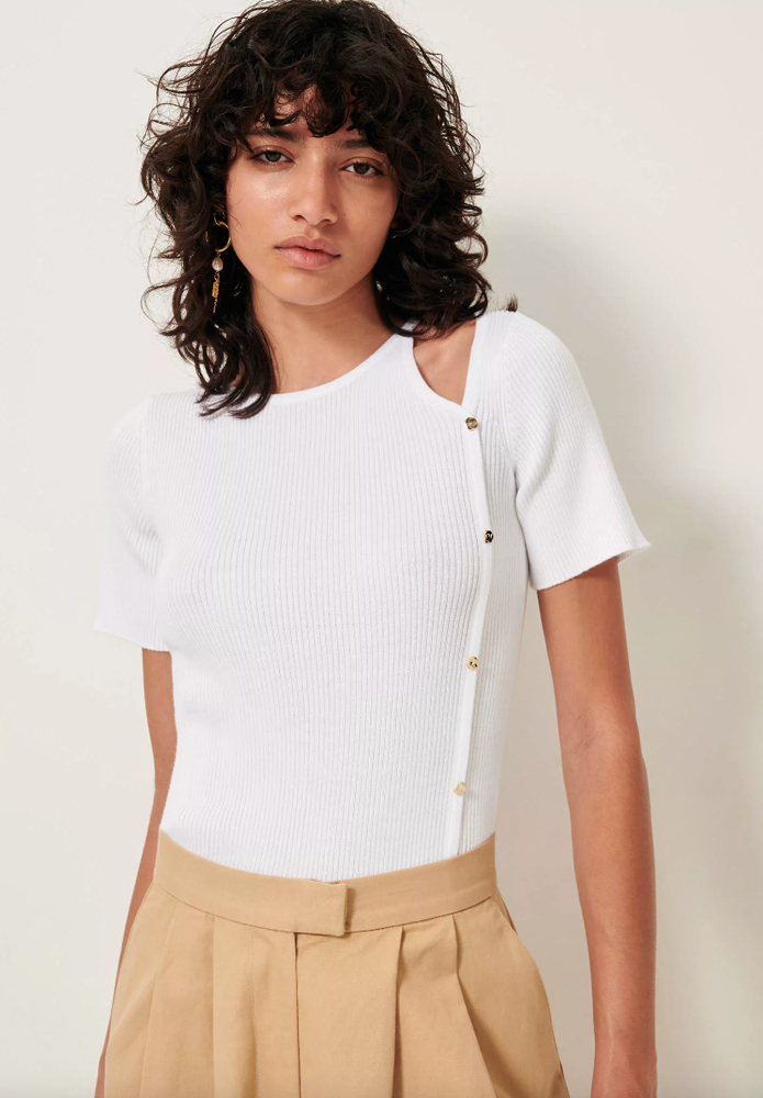 Camiseta Blanca con Cuello en V y Mangas Cortas en Lino/Elastano de MAJESTIC DE FILATURES.