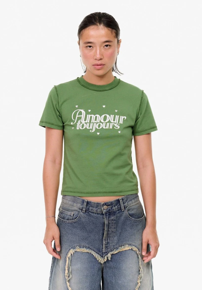 CAMISETA A1050061 Esta camiseta tiene cuello redondo, manga corta y el logo de GANNI. Luce un estampado de conejitos y el mensaje «¡Que tengas un buen día! Por favor, recicla».