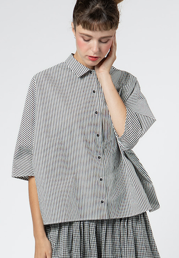 CAMISA HAND WOVEN ALBA 126 BLACK La camisa Alba de MII, de manga corta, está confeccionada en popelina de algodón. Una prenda alegre y llamativa, ideal para los días de verano.