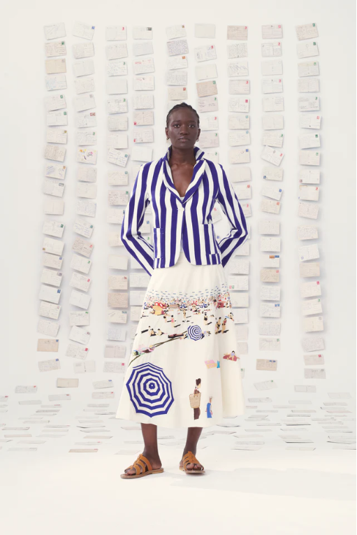 Sus detalles bordados a mano evocan el icónico tema de las postales de vacaciones: ¡vistas de playa veraniegas!