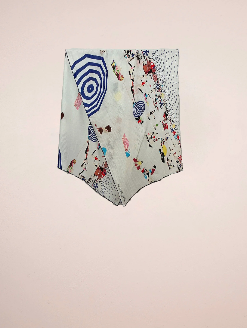 FOULARD LA PLAGE 20A Este pañuelo playero evoca la icónica imagen de las postales de vacaciones: ¡vistas de playa en verano!