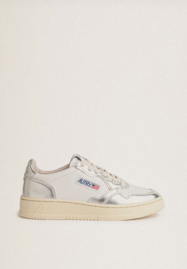 Estas zapatillas para mujer están confeccionadas en suave piel blanca de aspecto auténtico y acabadas con refuerzos de ante beige para una mezcla táctil y gráfica. El detalle de piel negra que decora el talón está personalizado con el logotipo de Autry.