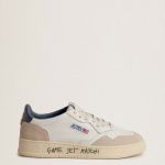 Estas zapatillas para mujer están confeccionadas en suave piel blanca de aspecto auténtico y acabadas con refuerzos de ante beige para una mezcla táctil y gráfica. El detalle de piel negra que decora el talón está personalizado con el logotipo de Autry.