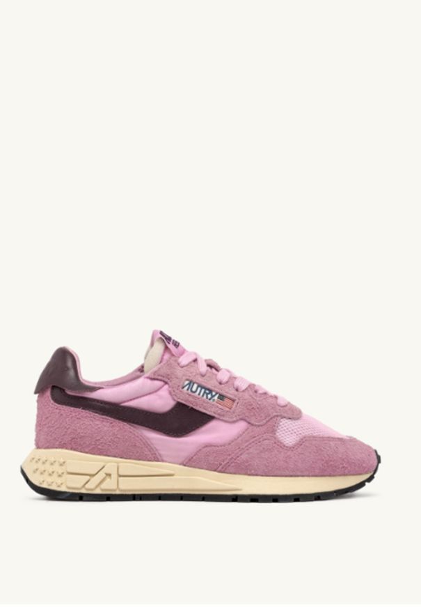 Las zapatillas deportivas Reelwind de AUTRY para mujer exploran el dinamismo callejero con una construcción en paneles que combina nailon y ante beige tono sobre tono con inserciones de piel agrietada blanca. La mezcla de colores y texturas añade contraste al perfil limpio y ligero, que descansa sobre una suela de running de Phylon blanco que aporta flexibilidad y agarre a cada paso.