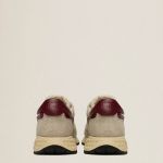 La zapatilla deportiva Reelwind ofrece la ventaja técnica de un modelo de rendimiento deportivo y el estilo inconfundible de la estética Autry. Esta zapatilla para mujer está confeccionada en nylon beige y reforzada con inserciones de ante tonal y piel BURGUNDY que crean un diseño dinámico.