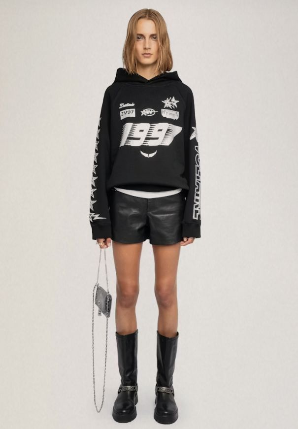 Sudadera con capucha con multicustomización de strass.