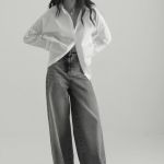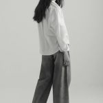 Pantalón amplio en chambray de color con hilos de lino moteados y torcidos teñidos.