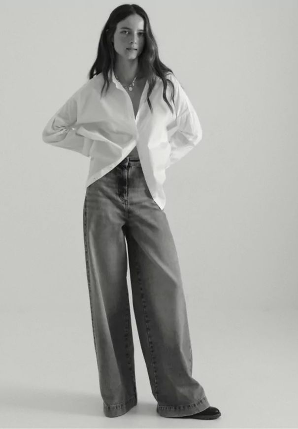Camisa amplia en popelín compacto de algodón orgánico, tejida en Italia.