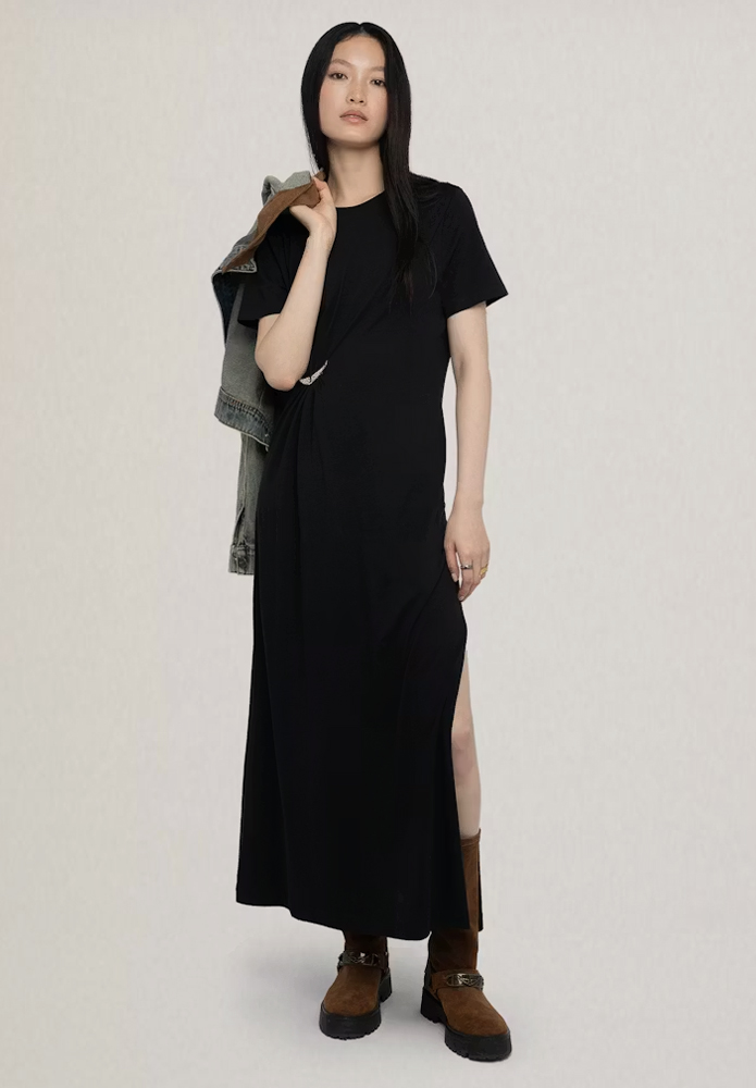 VESTIDO RAJA HC PLISSE WIN JWDR01133 Vestido largo plisado de mangas cortas.