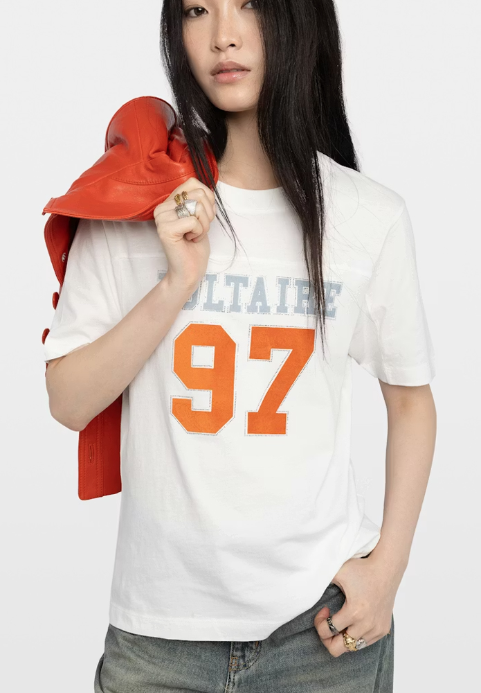CAMISETAA BOO HC VOLTAIRE 97 STRASS Camiseta de manga corta con estampado y strass en la parte delantera.