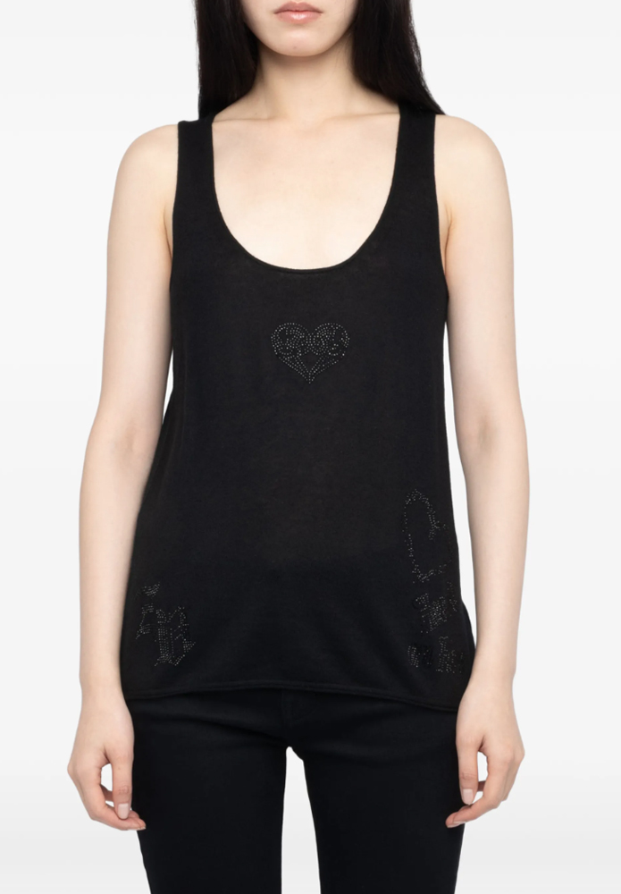 CAMISETA CLOE HC HEART JWTT01280 Camiseta de cuello redondo sin mangas con estampado y strass.