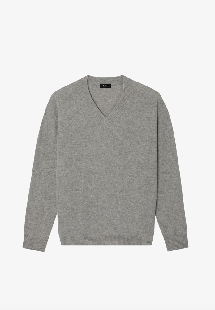 JERSEY DANY Jersey unisex de APC holgado de cuello en V en lana de yak de color marrón castaño jaspeado.