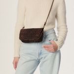Bolso de hombro, para llevar al hombro, cruzado o en la mano. Asa de piel acolchada y correa de hombro ajustable y extraíble. Cierre mediante solapa magnética de piel, decorada con juncos cosidos.