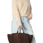 Bolso de hombro, para llevar al hombro, cruzado o en la mano. Asa de piel acolchada y correa de hombro ajustable y extraíble. Cierre mediante solapa magnética de piel, decorada con juncos cosidos.