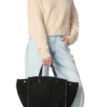 Bolso de hombro, para llevar al hombro, cruzado o en la mano. Asa de piel acolchada y correa de hombro ajustable y extraíble. Cierre mediante solapa magnética de piel, decorada con juncos cosidos.