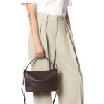 Bolso de hombro, para llevar al hombro, cruzado o en la mano. Asa de piel acolchada y correa de hombro ajustable y extraíble. Cierre mediante solapa magnética de piel, decorada con juncos cosidos.