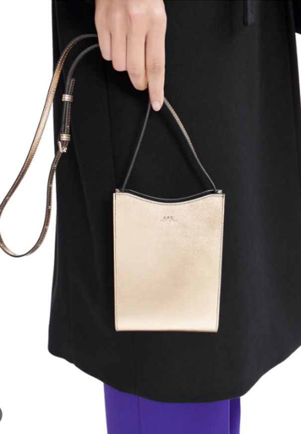 Con el estilo típico de A.P.C., este modelo está confeccionado en piel de líneas depuradas y mínimamente acentuado con detalles metálicos dorados.