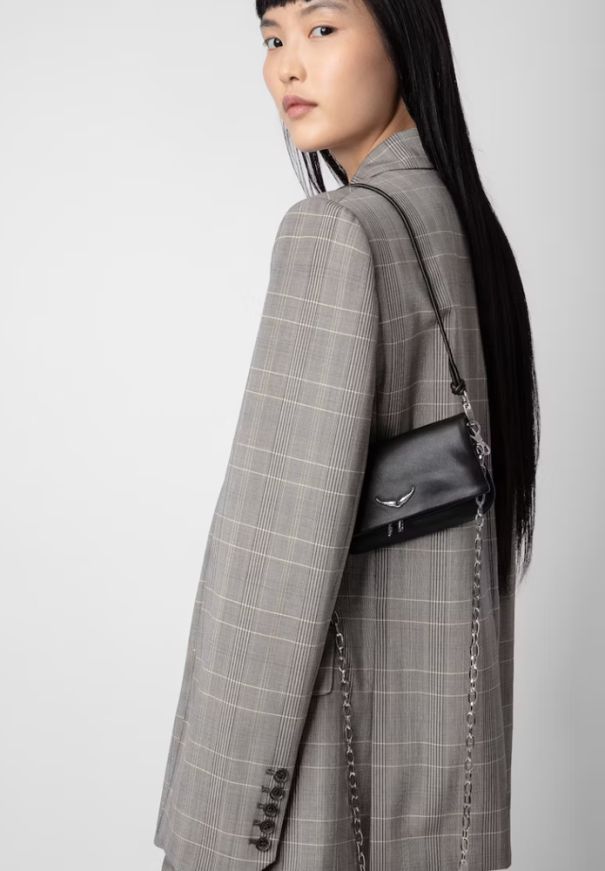 - Emblemático bolso de mano Rock Nano de piel con efecto granulado negro para mujer- Solapa con cierre de cremallera y magnético