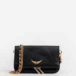 - Emblemático bolso de mano Rock Nano de piel con efecto granulado negro para mujer- Solapa con cierre de cremallera y magnético