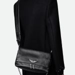 - Emblemático bolso Rocky negro de piel acolchada con efecto granulado para mujer