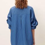 Camisa amplia en popelín de SESSÚN compacto con motivo de finas rayas bicolor texturizadas y bolsillos de parche, tejida en Italia.