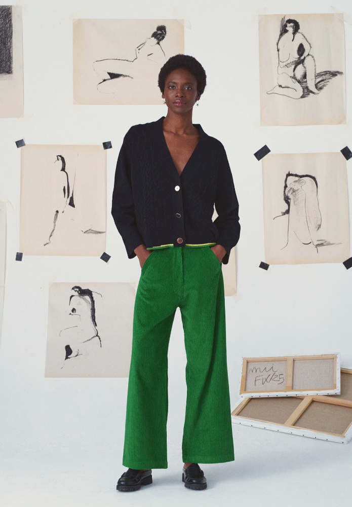 El detalle está en los acabados, con los bordes de los bolsillos bordados a mano, que les dan un toque gráfico y marcan la identidad de mii con hilo de algodón. Disponibles en una nueva paleta de colores: azul cielo, azul rey, burdeos, verde y azul marino. Los pantalones Lena combinan a la perfección con la chaqueta camisera Fifou.