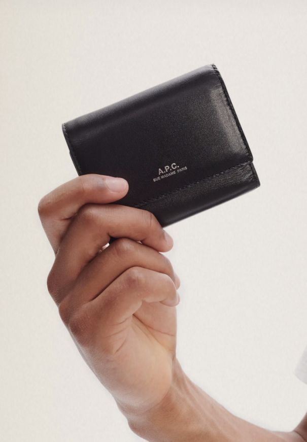 Con el estilo típico de A.P.C., este modelo está confeccionado en piel de líneas depuradas y mínimamente acentuado con detalles metálicos dorados.