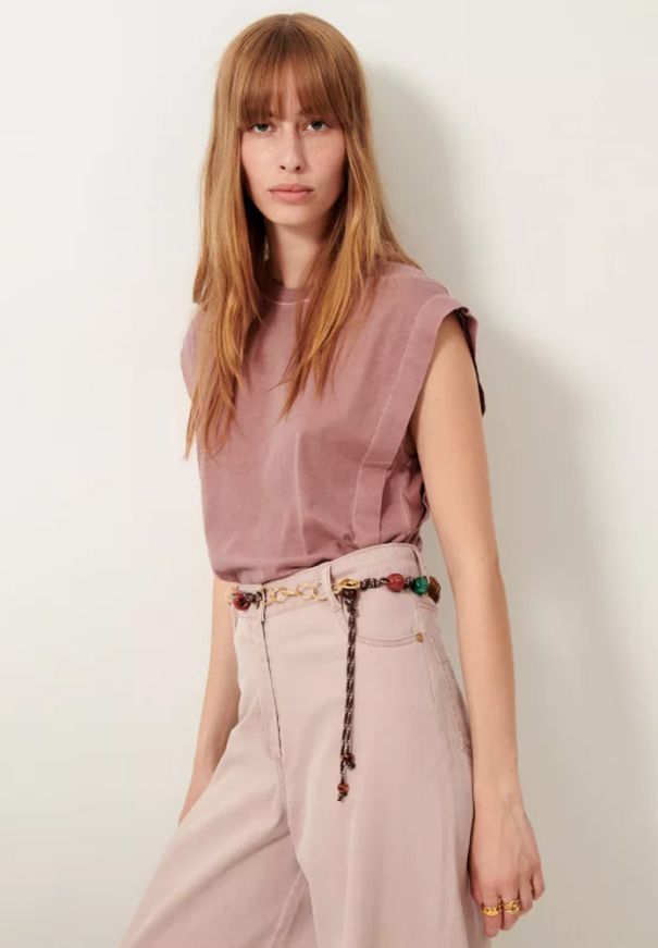 Camiseta sin mangas en punto fluido, confeccionada en Portugal.