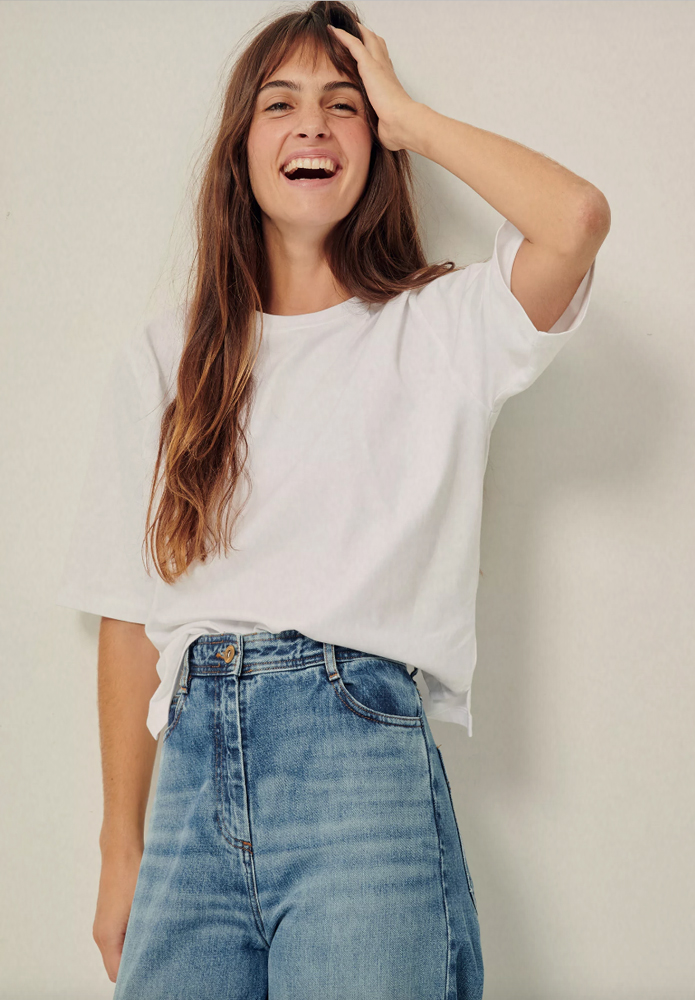 La tela utilizada está fabricada en algodón y poliéster reciclados, que ayudan a reducir su impacto ambiental e integrarse en un proceso más amplio de la conservación de recursos.