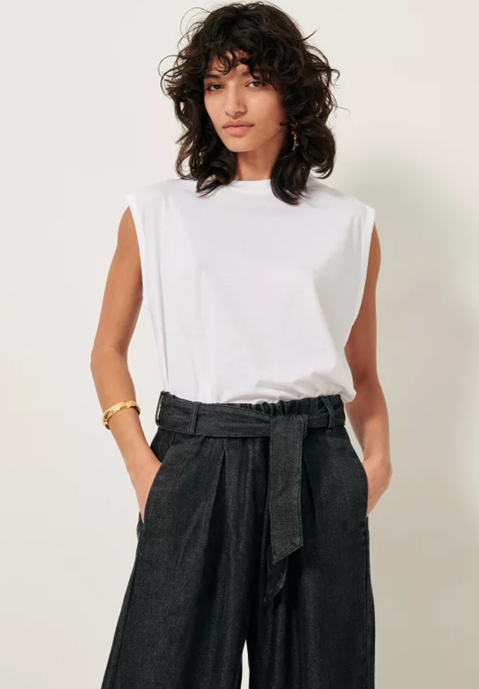 Camiseta sin mangas en punto fluido, confeccionada en Portugal.