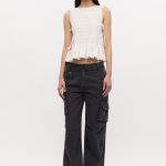 Estos pantalones de GANNI cuentan con trabillas para cinturón, cierre de cremallera y botón. Cuentan con múltiples bolsillos, incluyendo bolsillos cargo laterales y cordones ajustables en el bajo del tobillo.
